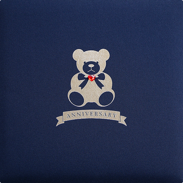 手触りの良いぬくもりある素材にキュートなクマのイラストとハートのクリスタルガラスをアクセントにしました。一粒のハートに「愛」をこめて。