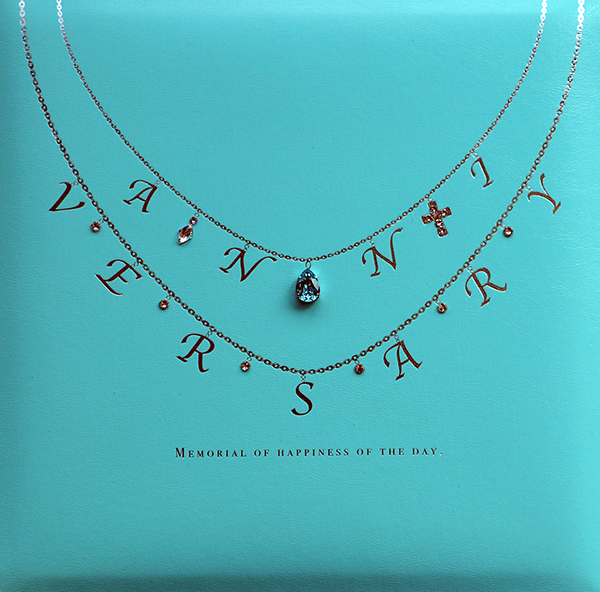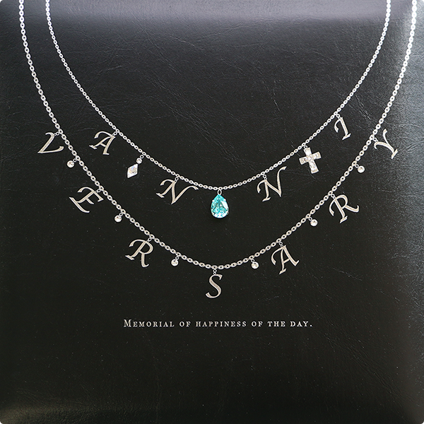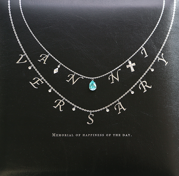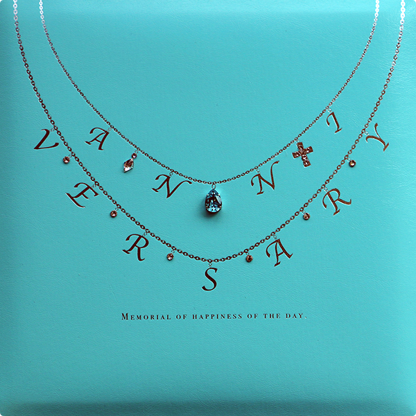 まるでダイヤのように輝くクリスタルガラスと、「ANNIVERSARY」の文字をチャーム付ネックレス風にデザインしました。