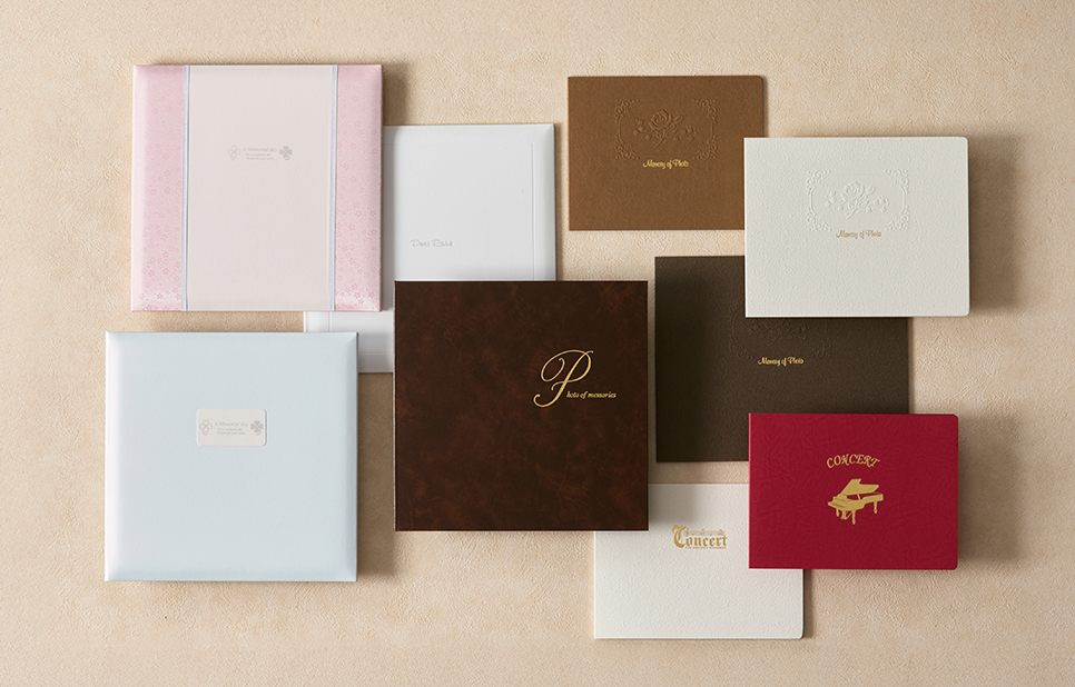 結婚式、出産、お宮参り、七五三、卒入学式、成人式など、大切な思い出の写真に合わせて、豊富なデザインの写真台紙、デジタルアルバムをご用意しております。すべて日本国内で職人が丁寧に生産し、安定した品質を提供できるように取り組んでいます。