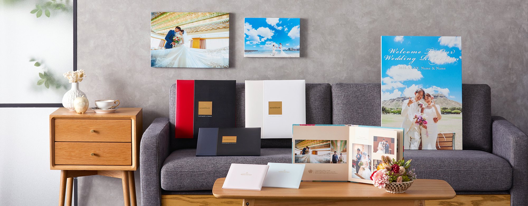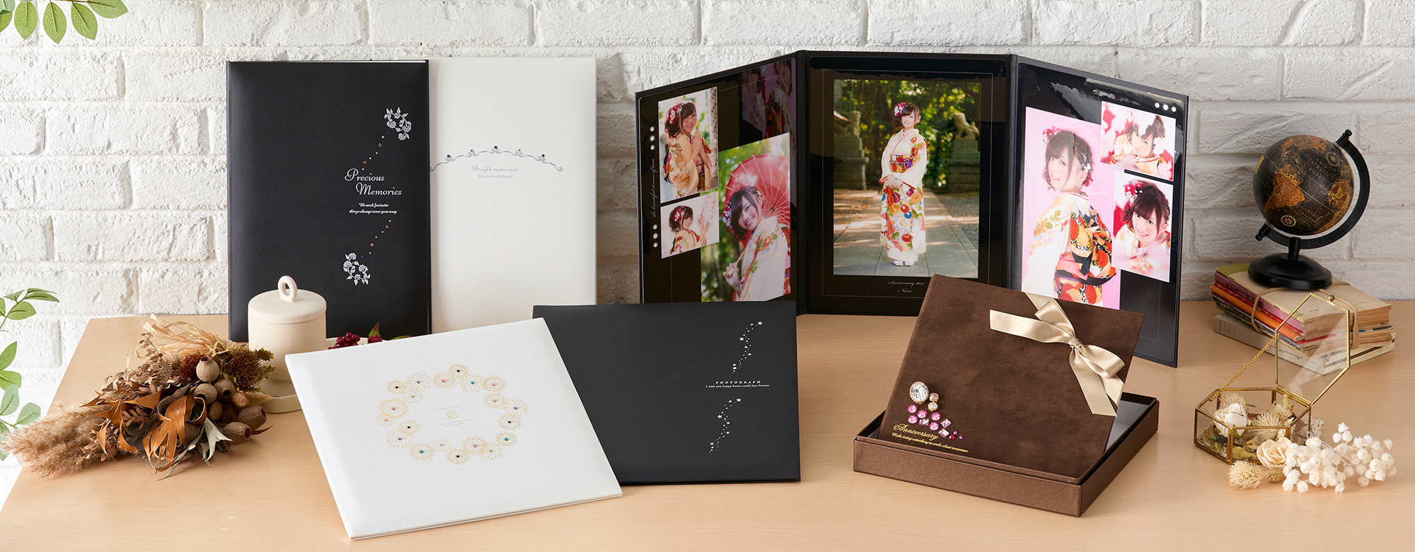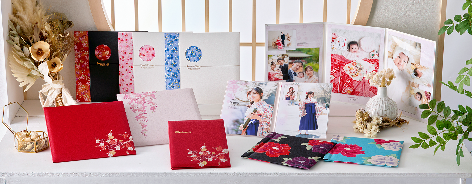 結婚式、出産、お宮参り、七五三、卒入学式、成人式など、大切な思い出の写真に合わせて、豊富なデザインの写真台紙、デジタルアルバムをご用意しております。すべて日本国内で職人が丁寧に生産し、安定した品質を提供できるように取り組んでいます。