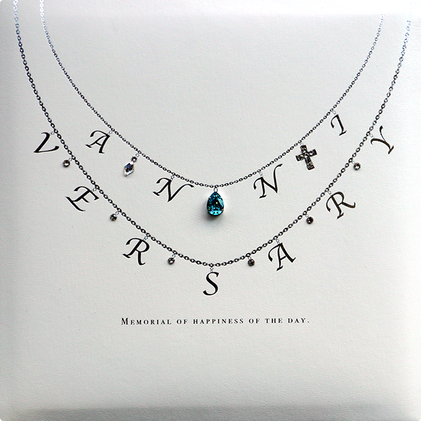 まるでダイヤのように輝くクリスタルガラスと、「ANNIVERSARY」の文字をチャーム付ネックレス風にデザインしました。